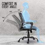 360° Swivel Casters Durable and flexible casters provide excellent mobility on any surface, never scratching the floor, not slipping, and noiseless. High Density Mesh Breathable, durable, not easy to deform The high-density mesh covers both the padded seat and the chair back. This superior quality mesh offers good breathability, comforts, and enhances the back support. High Quality Gas Lift Cylinder Class 4 Selected superior material, durable, more solid and safer, strong load-bearing capacity. Ergonomic Design Lumbar support, reducing back pain caused by long time sitting; Fits the curve of your spine to reduce back pressure.