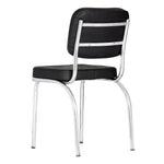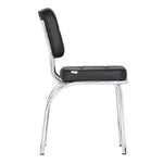 Leatherette Guest Chair Upholstered in Soft thread leatherette for an upscale look and feel. Padded Cushions Padded seat and back cushions provide long lasting comfort. A sturdy tube frame creates the ultimate stability and comfort. This attractive side chair features integrated arms, contoured cushions, and a chrome plated frame sled base that provides added stability. A unique design of seat works to reduce leg strain and promote healthy blood flow. The chrome plated tubular metal frame is exceedingly versatile and will complement any existing decors.