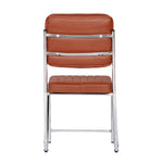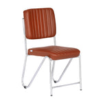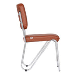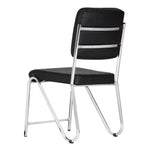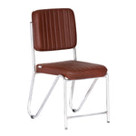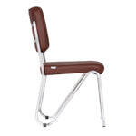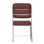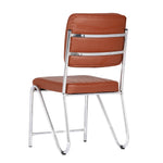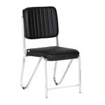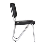 Leatherette Guest Chair Upholstered in Soft thread leatherette for an upscale look and feel. Padded Cushions Padded seat and back cushions provide long lasting comfort. A sturdy tube frame creates the ultimate stability and comfort. This attractive side chair features integrated arms, contoured cushions, and a chrome plated frame sled base that provides added stability. A unique design of seat works to reduce leg strain and promote healthy blood flow. The chrome plated tubular metal frame is exceedingly versatile and will complement any existing decors.