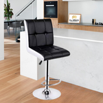 - With a built in 360 degree swivel | High density foam upholstered in leatherette | Constructed with polished chrome base and footrest